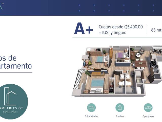 Reserva de Q5,000.00. Enganche mínimo del 7% fraccionado. Entrega a finales del 2023.